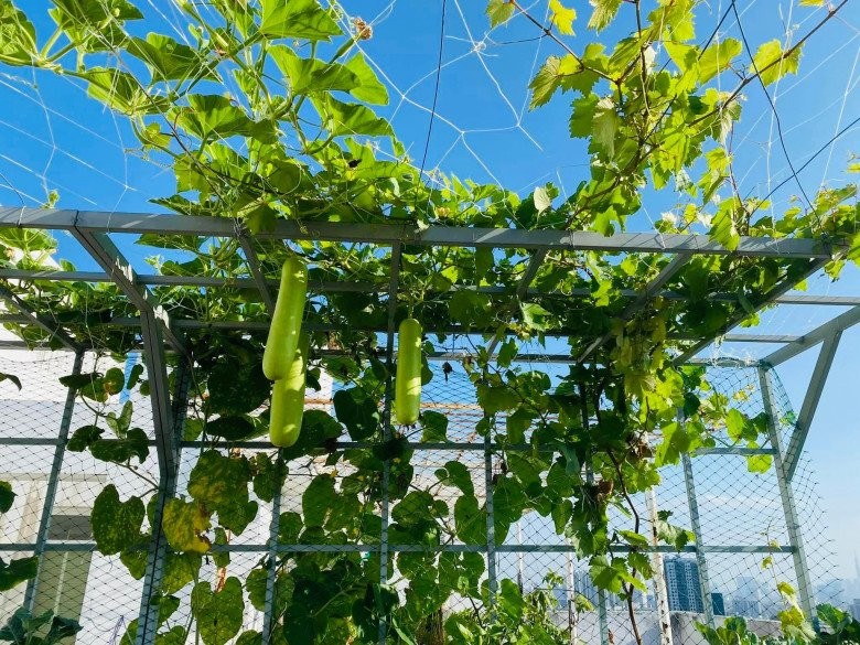 Nữ giám đốc lý giải: "Mình dùng chậu là chất liệu Composite độ bền lên đến 15 năm. mình muốn đầu tư một lần và cứ vậy trồng theo thời gian dài, không cần thay đổi vì ở chung cư vận chuyển lên xuống rất khó khăn". Được biết, tổng chi phí đầu tư cho khu vườn 130m2 là 120 triệu đồng bao gồm nguyên vật liệu và thi công phần cứng như giàn, hàng rào sắt đóng chậu, đèn chiếu sáng,...
