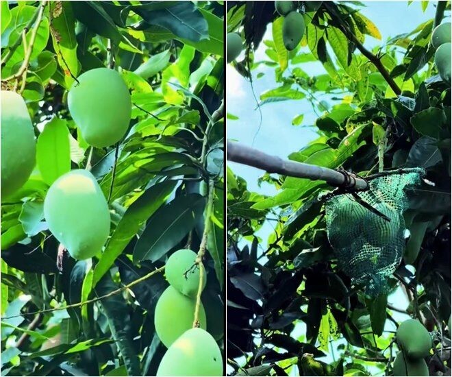 "Trinh ít trồng cái loại cây giống nó còn nhỏ, đợi có trái lâu, Trinh nôn á các bạn. Và bây giờ nhà Trinh nhiều nhất là xoài Thanh Ca - loại xoài gắn với tuổi thơ của mình đó", cô cho hay.