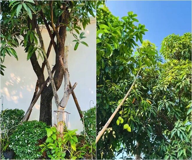 Diễn viên nổi tiếng tâm sự, cây xoài gắn liền với tuổi thơ của mình, cô thích nhìn hoa xoài, rồi ngắm những chum xoài lủng lẳng. Hồi bé, cô nhiều lần leo trèo lên cây để hái xoài.