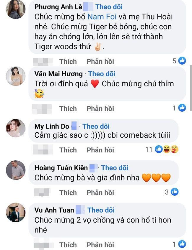 Qua đó mọi người đoán được con yêu của Thu Hoài và Hoàng Nam chào đời vào cuối năm 2022. Nhiều bạn bè của nữ MC là diễn viên Phanh Lee, ca sĩ Văn Mai Hương, Hoa hậu Đỗ Mỹ Linh... gửi lời chúc mừng không ngớt đến gia đình nữ MC. Bên cạnh đó cũng chúc cho em bé hay ăn, chóng lớn trong khoảng thời gian tới.