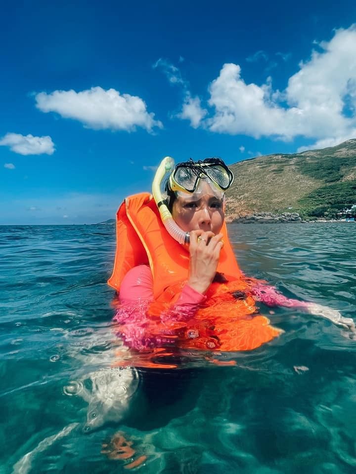 Ngoài ra Diễm My còn chăm chỉ hoạt động ngoài trời như lặn biển, chạy bộ, leo núi...