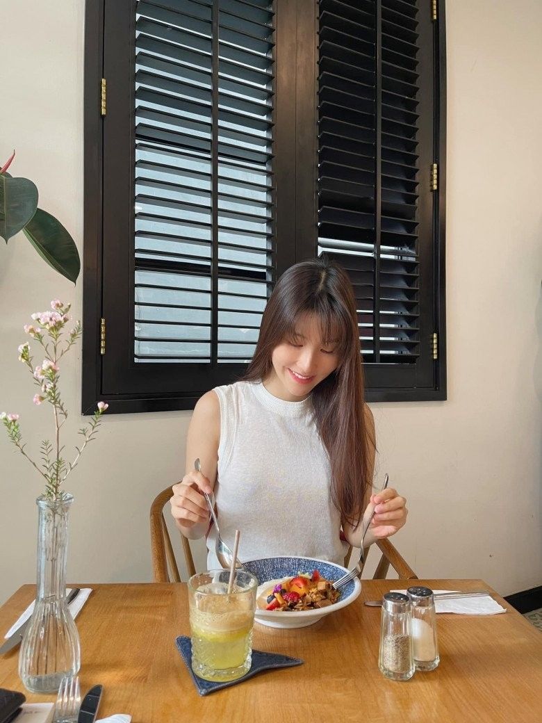 Cô có chế độ ăn uống đủ dưỡng chất mà không cần giảm quá nhiều tinh bột hay chất béo.