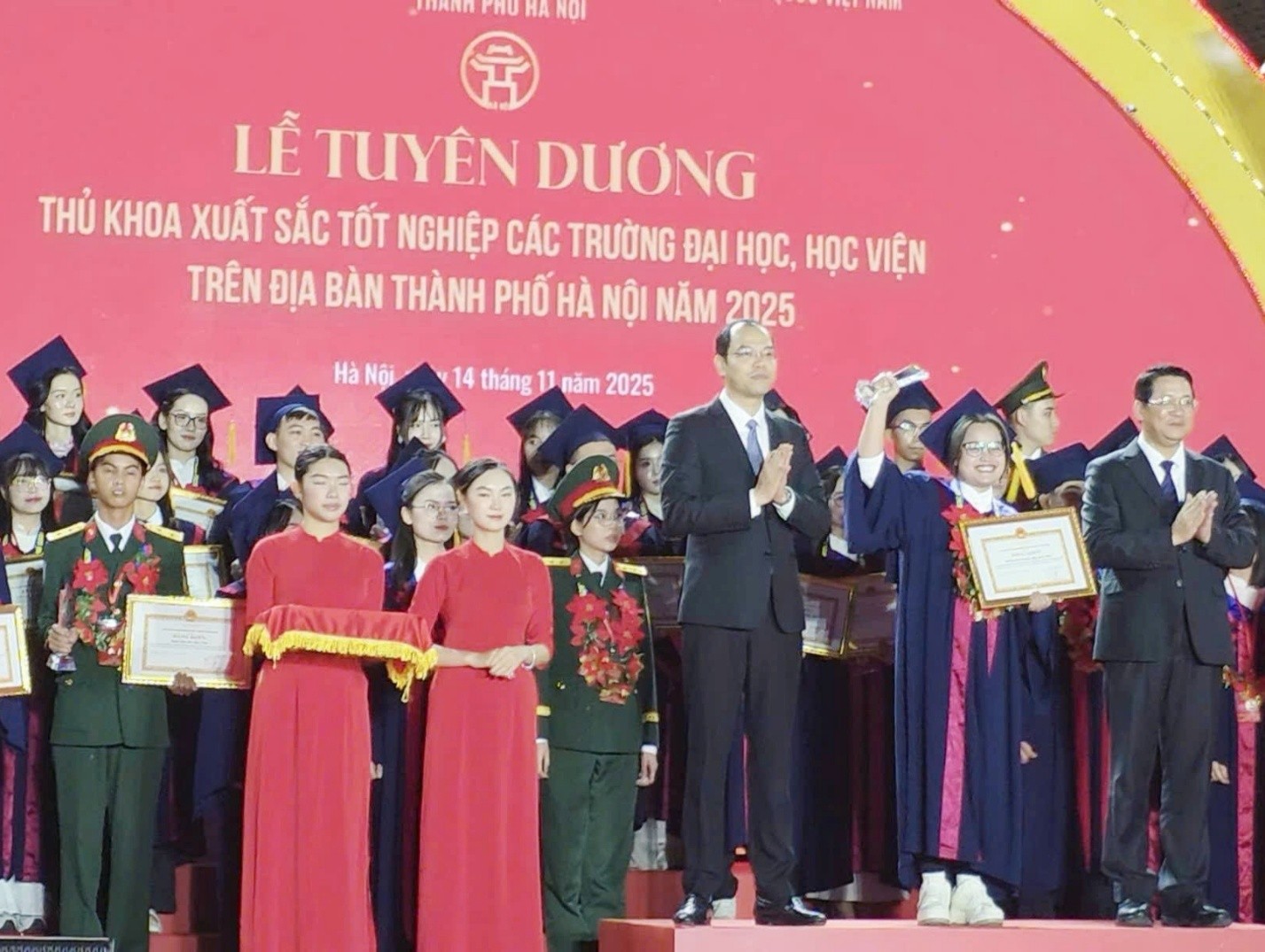 Linh Chi vinh dự nhận bằng khen tại Lễ tuyên dương Thủ khoa TP Hà Nội