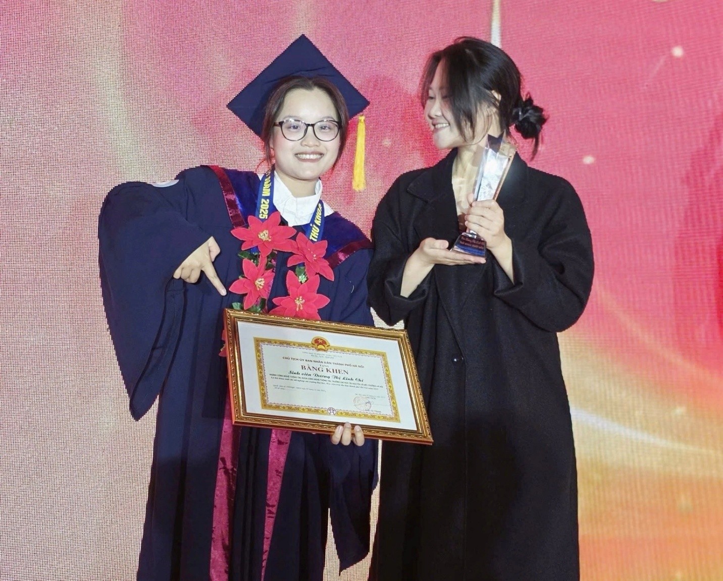 “Khoảng thời gian khó khăn nhất là khi em cảm thấy tự ti khi học ở trường ít người biết, không phải là ngành chọn ban đầu, và thấy bạn bè thực tập ở công ty lớn. Em vượt qua bằng cách chia nhỏ mục tiêu cho từng kỳ học: Có học bổng – hiểu kiến thức – không bỏ dở. Em rất ấn tượng với sự tận tâm của thầy cô khoa CNTT, đặc biệt cô Lan Anh và thầy Khải, luôn hỗ trợ sinh viên, tạo môi trường học tập thân thiện và nhân văn”, Linh Chi chia sẻ.