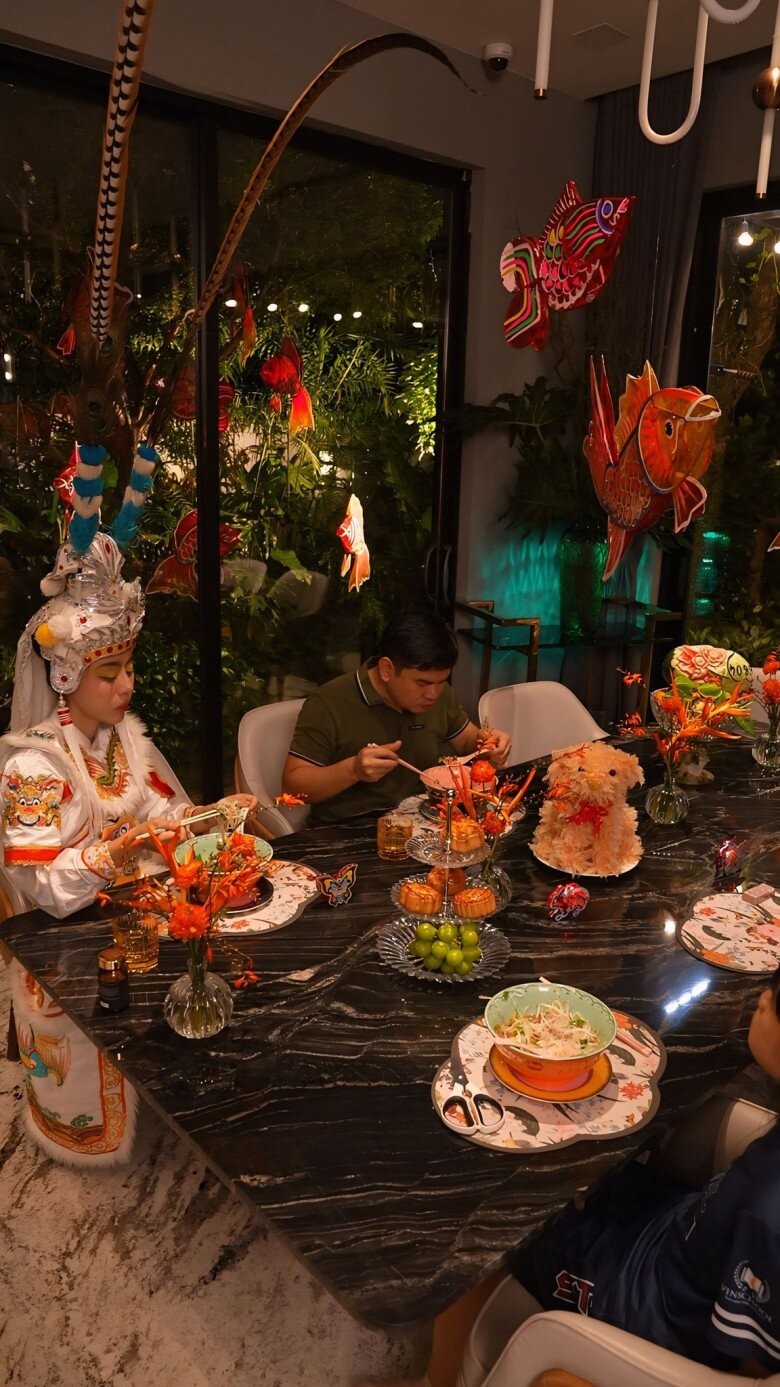 Trong bộ trang phục diễn tuồng khiến nhiều người nhận xét "trông như Tề Thiên Đại Thánh", cô khiến dân mạng thích thú bởi độ “chịu chơi” và tinh thần giữ gìn văn hóa truyền thống. Không chỉ đầu tư phần tạo hình, nàng Á hậu còn tự tay vào bếp nấu cỗ, đồng thời kỳ công trang trí biệt thự ven sông của mình thành một không gian đậm chất Trung thu truyền thống, nhưng vẫn sang trọng và hiện đại. Cô viết thêm: “Trung thu của mẹ hay của con thì cũng không biết nữa”, bày tỏ niềm vui và sự tận hưởng của chính mình trong dịp lễ đoàn viên.