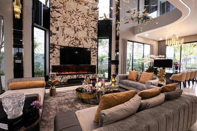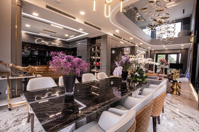 Nàng hậu và gia đình đang sống trong một cơ ngơi đắt đỏ tại một khu đô thị xa hoa bậc nhất Hà Nội. Thiết kế 3 mặt kính, toàn bộ không gian sống được đầu tư rất kỹ lưỡng.