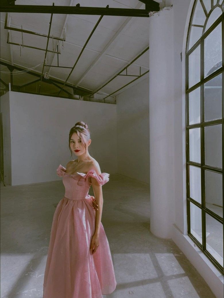 Giờ đây cô nàng ưa chuộng diện váy trễ vai gợi cảm và nữ tính hơn để ra dáng hoa hậu.