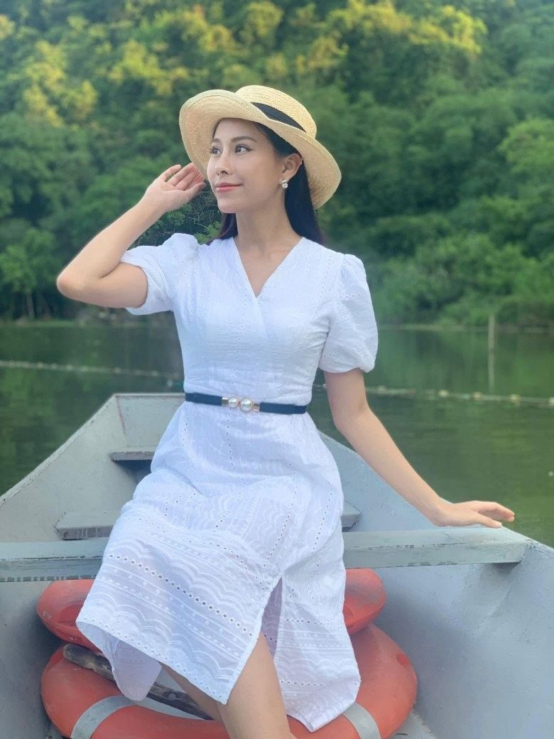 Thỉnh thoảng cô cũng trở nên dịu dàng với váy trắng tinh khôi.