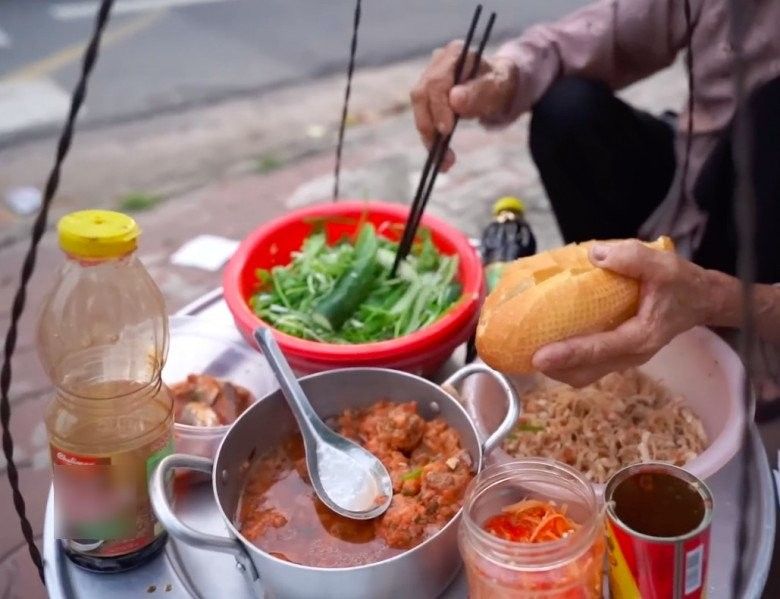 Đó là gánh bánh mì của bà Sáu, năm nay đã 87 tuổi, bán trên con đường Nguyễn Chí Thanh (phường Tân An, TP. Thủ Dầu Một, tỉnh Bình Dương). Chắc hẳn nhiều người sẽ bất ngờ khi trong thời buổi mọi thứ đều trở nên đắt đỏ, lại có nơi bán bánh mì đầy đủ thịt rau nhưng chỉ với giá 5.000 đồng.