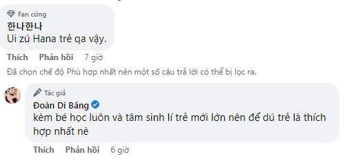 Những vị bảo mẫu này đều đã gắn bó với gia đình nữ đại gia khá lâu. Mới đây, bà mẹ 3 con còn tiết lộ, vị bảo mẫu cho con gái thứ 2 Yuki chính là mẹ ruột của vị bảo mẫu con gái thứ nhất Hana - thư kí Kim. Thư kí Kim là vị bảo mẫu trẻ tuổi, xinh đẹp, giỏi giang. Theo tiết lộ của Đoàn Di Băng, bé Hana đang ở lứa tuổi dậy thì nên cô ưu tiên lựa chọn bảo mẫu cũng trẻ để dễ dàng hiểu tâm lý, nắm bắt những suy nghĩ của trẻ hơn. Ngoài ra, Kim còn giúp Hana học tập.