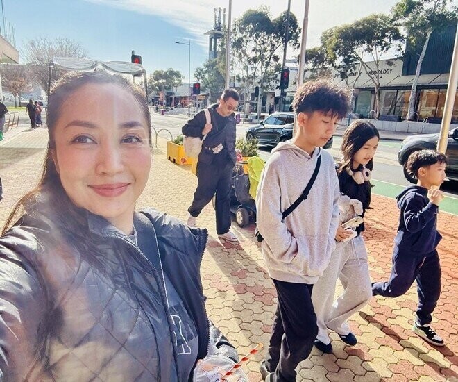 “La đi theo phụ mẹ làm MC, tranh thủ thăm gia đình. Trời lạnh thật là thích. Vừa đáp là đi kiếm cafe liền và phá lệ bữa sáng bằng tô bánh đa bề xay chắc no đến ngày mốt” - mẹ 3 con từng chia sẻ.