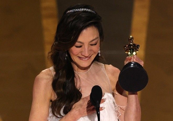 Và cả khán phòng như vỡ òa trong khoảnh khắc Dương Tử Quỳnh vượt qua Cate Blanchett để trở thành minh tinh châu Á đầu tiên thắng giải Nữ chính xuất sắc của Oscar. Người đẹp Malaysia nghẹn ngào phát biểu: "Cảm ơn những người theo dõi tôi đêm nay. Đây là biểu tưởng của hy vọng, là bằng chứng giấc mơ có thể thành hiện thực. Và những quý cô thân mến, đừng để ai nói bạn đã hết thời!... Tôi sẽ mang giải thưởng về Malaysia để ăn mừng cùng người thân. Nếu không có mẹ sẽ không có anh hùng nào cả."