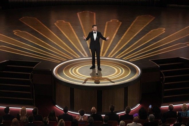 Để gây ấn tượng với khán giả, Jimmy Kimmel đã chọn nhảy dù xuống sân khấu, mô phỏng theo cảnh phim Top Gun: Maverick. Sau đó, anh ngay lập tức đề cập đến cú tát khét tiếng của Will Smith trong đoạn hài độc thoại của mình.