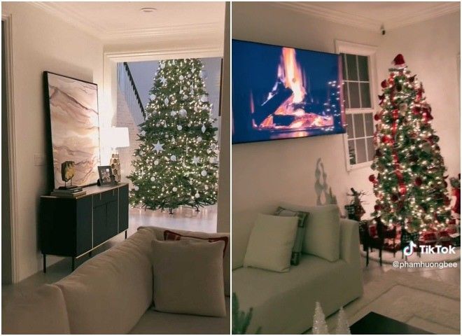 Cững như mọi năm mới đây, trên trang Tiktok cá nhân, Phạm Hương đăng tải loạt ảnh tổ ấm nhỏ của mình đón Giáng sinh tại xứ sở cờ hoa. Qua đoạn video có thể thấy cơ ngơi bạc tỷ của nàng Hậu đã tràn ngập không khí Noel với 3 cây thông to để ở 3 góc trong phòng khách.