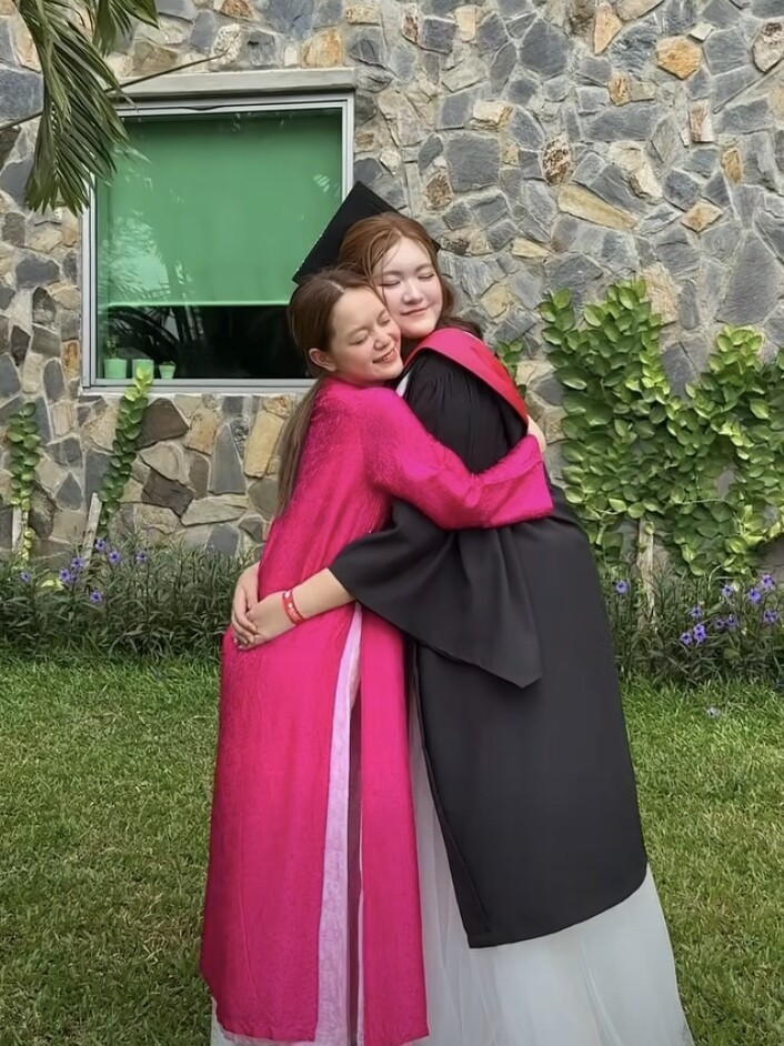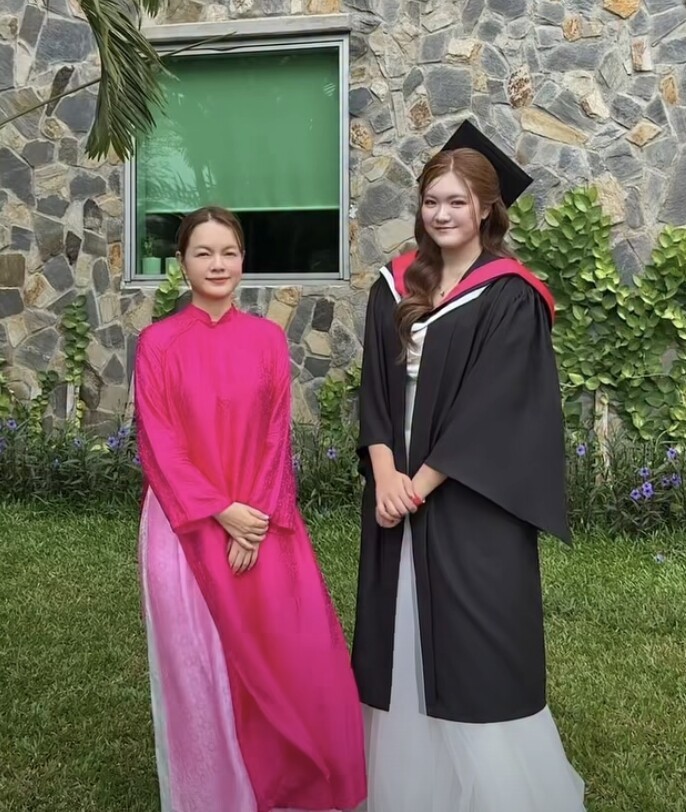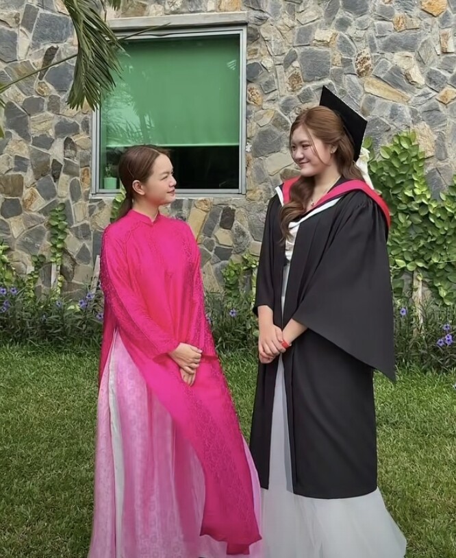 Mới đây, nữ ca sĩ “Bụi bay vào mắt” gây chú ý khi đăng tải đoạn video đến trường chúc mừng con gái Trà My tốt nghiệp cử nhân Đại học. Điểm khiến nhiều người trầm trồ là khi đứng cạnh Trà My, Phạm Quỳnh Anh trông như “người tí hon”.