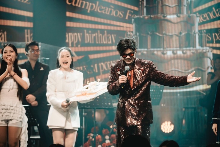 Cuối chương trình, cả khán phòng cùng đứng dậy hát vang "Khúc hát mừng sinh nhật" - bản hit lớn nhất trong sự nghiệp của Phan Đinh Tùng.