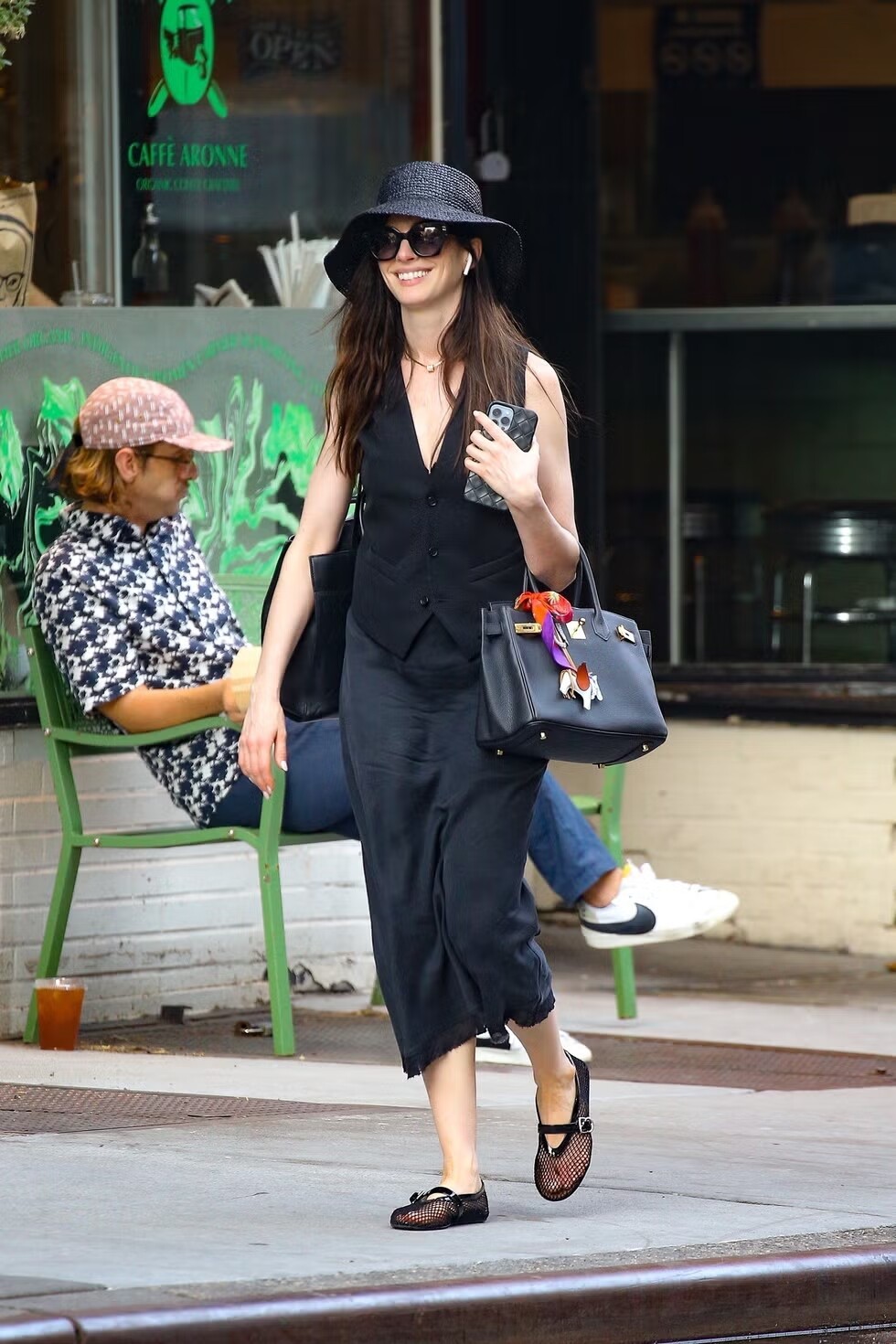 Kourtney Kardashian, Zendaya và Anne Hathaway đều cho thấy sức hút của giày búp bê lưới khi kết hợp cùng trang phục tông màu trung tính. Từ quần suông, áo tank top đến váy liền tối giản, các item đều được tiết chế về màu sắc để tôn lên thiết kế xuyên thấu tinh tế của đôi giày. Không chỉ giúp tổng thể trông nhẹ nhàng, thanh lịch, kiểu giày này còn tạo hiệu ứng đôi chân dài và thoáng hơn, phù hợp với phong cách hiện đại, tối giản đang được ưa chuộng.