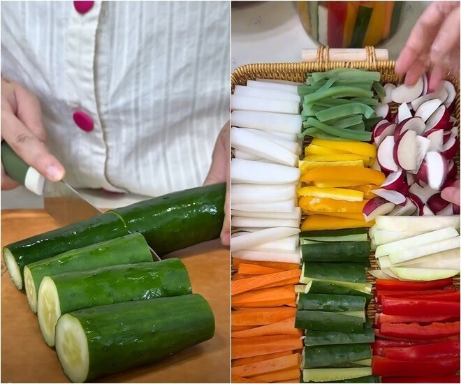 Xem video diễn viên Hoàng Kim Ngọc làm dưa muối cầu vồng.