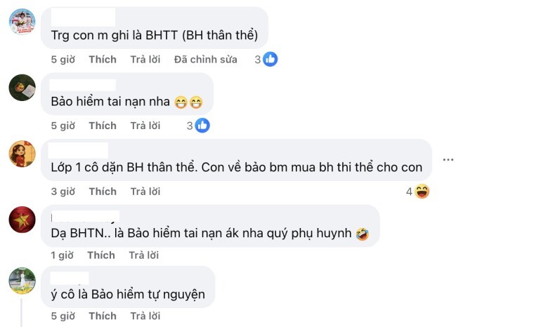 Thật ra khoản phí bảo hiểm đó là bảo hiểm tai nạn, nhưng vì giáo viên viết tắc là BHTN nên phụ huynh mới hiểu nhầm là bảo hiểm thất nghiệp. Có vẻ như ông bố này lần đầu tiên đi họp cho con, nên mới bỡ ngỡ và lạ lẫm như thế. Bên dưới bài chia sẻ, nhiều phụ huynh không nhịn được cười trước độ hài hước của ông bố.