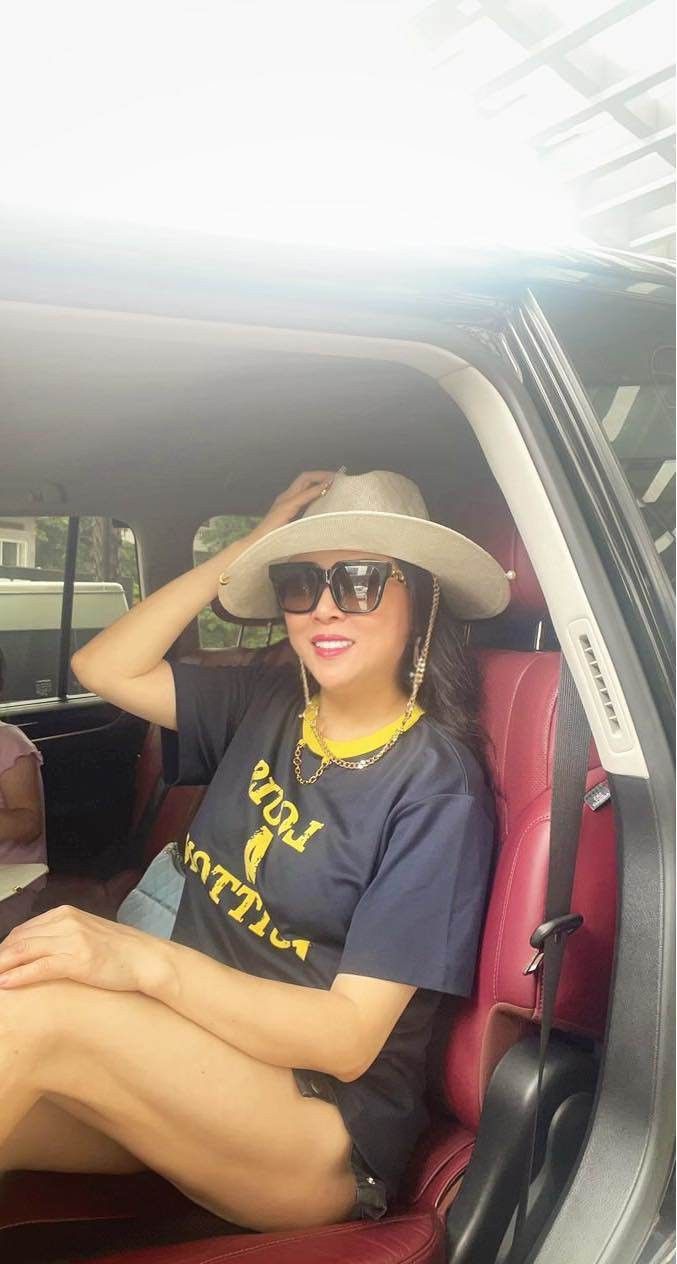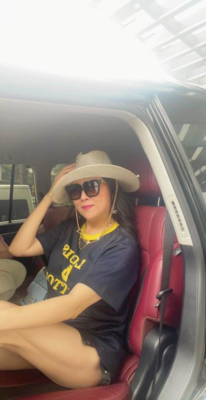 Được biết, vợ cũ Quách Ngọc Ngoan diện outfit này đi đón Quang Lê - nam ca sĩ chơi thân thiết của quý cô. Cuộc gặp mặt mang tính chất thân quen nên người đẹp 7X trưng diện có phần phóng khoáng, thoải mái. Có lẽ đây là combo mùa hè "xì tin" bậc nhất từ trước đến nay của Phượng Chanel. Người đẹp sở hữu body dáng quả táo với phần thân lớn, tay chân nhỏ nên rất hiếm khi diện quần short hay các món đồ legging.