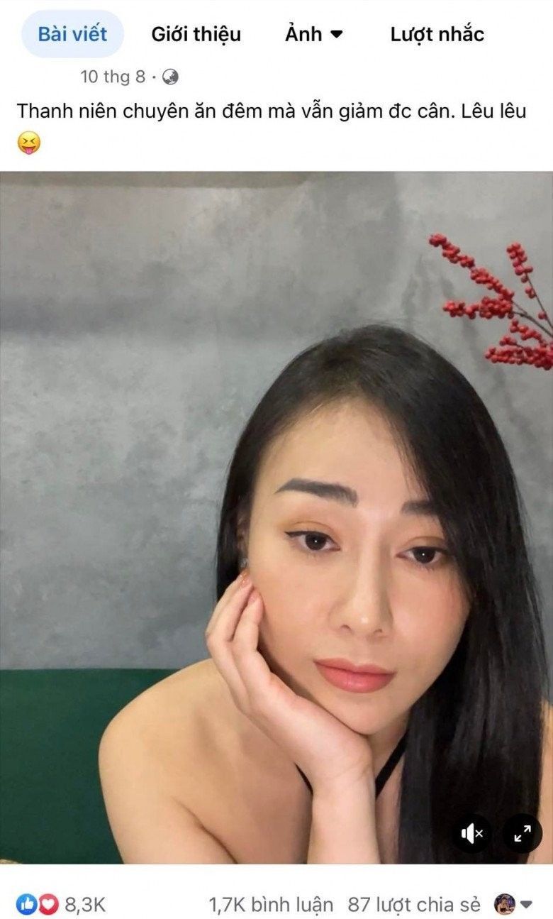 Một lần khác, cô nàng lại livestream trò chuyện cùng với fan. Tất nhiên, màn livestream này cũng được gắn thẻ với 1 đơn vị giảm béo nào đó. Người đẹp viết: "Thanh niên chuyên ăn đêm mà vẫn giảm được cân. Lêu Lêu".