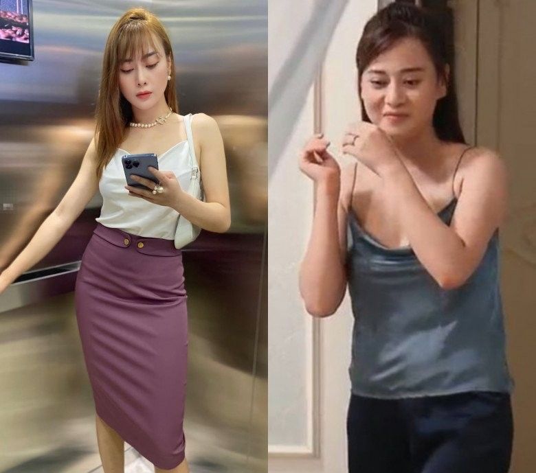 Thiết kế 2 dây bằng lụa siêu mát mẻ này ngày trước đã khiến Phương Oanh "ngộp thở" trong lời chê bai khi diện lên phim. Bối cảnh trên phim rất chuẩn và phù hợp để mặc nhưng cách cô diện lại trông khá lôi thôi và có phần phản cảm.