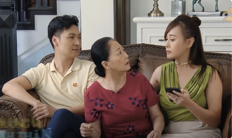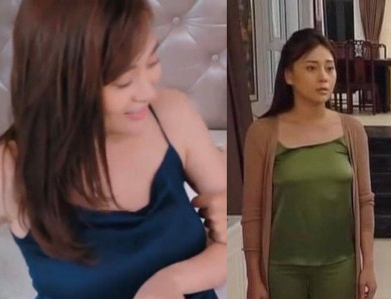 Chiếc áo lụa 2 dây màu trắng nữ diễn viên đang diện có thiết kế phần cổ nhún đặc biệt. Nó làm người xem chợt nhớ đến một Nam "nọng" trên phim năm xưa.