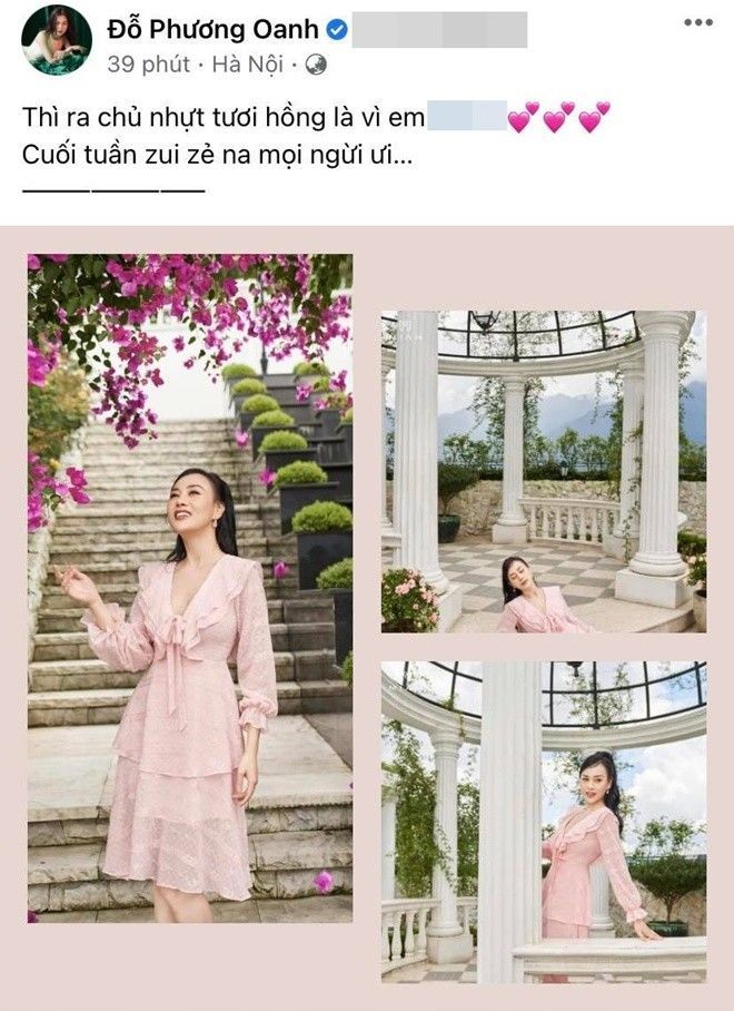 Bên cạnh đó, Phương Oanh cũng đăng tải một bài viết đáng chú ý lên trang cá nhân như muốn chứng minh bản thân không bận tâm đến những lời lẽ ác ý của cư dân mạng. Cụ thể, nữ diễn viên viết: “Thì ra chủ nhật tươi hồng là vì em. Cuối tuần vui vẻ nha mọi người ơi”. Kèm theo status, Phương Oanh khoe loạt ảnh “sống ảo” trong chiếc đầm hồng cực kì ngọt ngào, nữ tính.