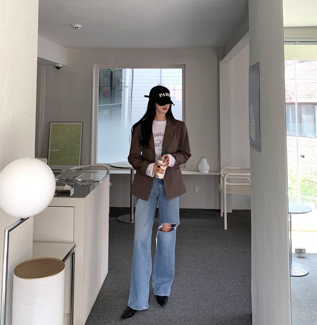 Khoác blazer bên ngoài quần jeans giúp set đồ trở nên chuyên nghiệp và chỉn chu. Kiểu phối này phù hợp những ngày cần hình ảnh nghiêm túc, nhưng vẫn giữ được vẻ trẻ trung, hiện đại.