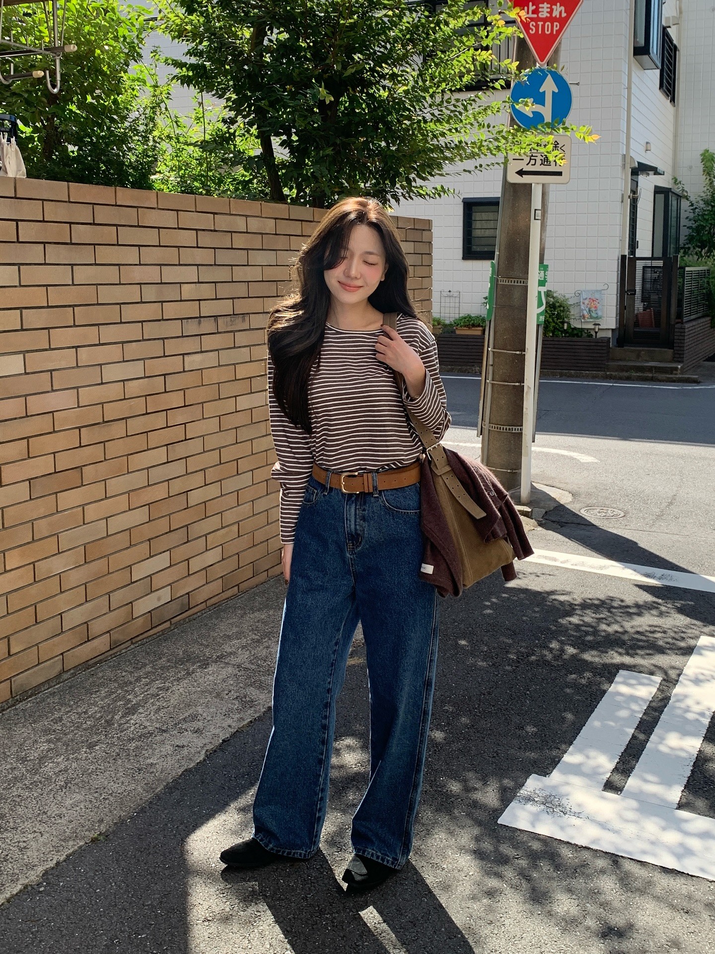 Áo dài tay dáng ôm vừa hoặc suông nhẹ giúp tôn dáng mà không gây cảm giác gò bó. Khi sơ vin cùng jeans cạp cao, vóc dáng trông cân đối và cao ráo hơn. Đây là kiểu phối đồ đơn giản nhưng có tính ứng dụng cao, mặc được quanh năm và hầu như không bao giờ lỗi mốt.