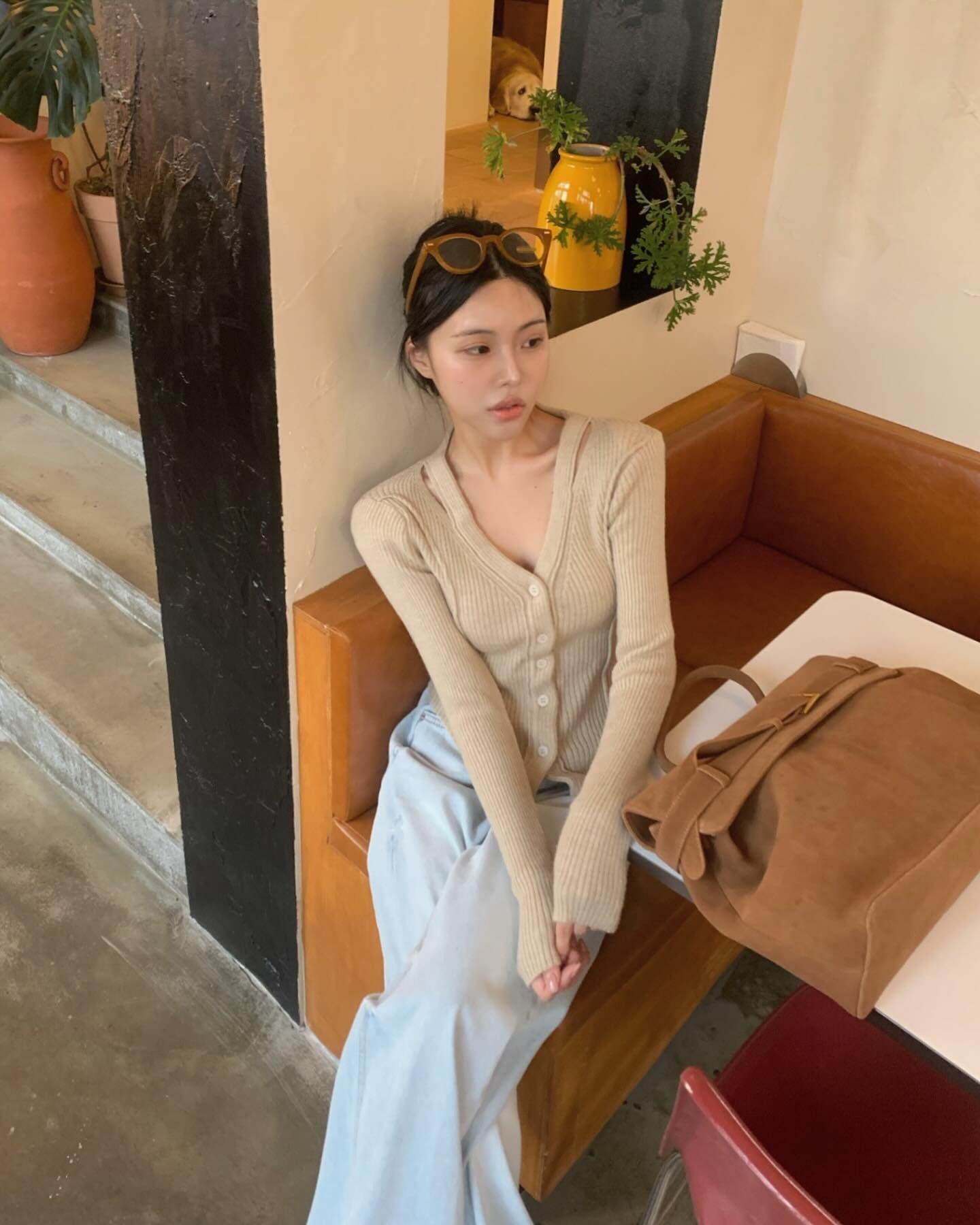 Áo cardigan giúp quần jeans bớt casual, tạo cảm giác mềm mại và dễ chịu. Khi chọn cardigan dáng gọn, set đồ vừa đủ lịch sự để đi làm, vừa trẻ trung, không lo lỗi mốt.