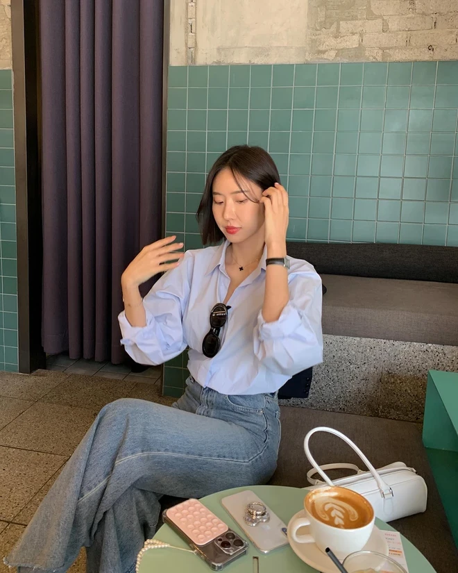 Quần jeans ống đứng + Áo sơ mi trắng là combo kinh điển chưa bao giờ lỗi thời. Áo sơ mi trắng mang lại sự thanh lịch đặc trưng, kết hợp cùng jeans ống đứng giúp tổng thể hài hòa giữa trẻ trung và chuyên nghiệp. Chị em có thể sơ vin gọn gàng để tạo hiệu ứng chân dài, thêm belt mảnh để tăng điểm tinh tế.