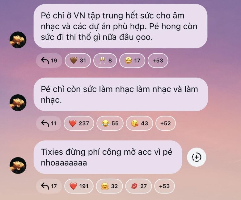 Tuy nhiên, nữ ca sĩ đã nhanh chóng lên tiếng phủ nhận tin đồn tham gia Tỷ tỷ đạp gió rẽ sóng ở Trung Quốc. Cô chia sẻ với người hâm mộ rằng: "Bé (ý chỉ bản thân Tóc Tiên - PV) chỉ ở Việt Nam tập trung hết sức cho âm nhạc và các dự án phù hợp. Bé không còn sức đi thi thố gì nữa đâu".
