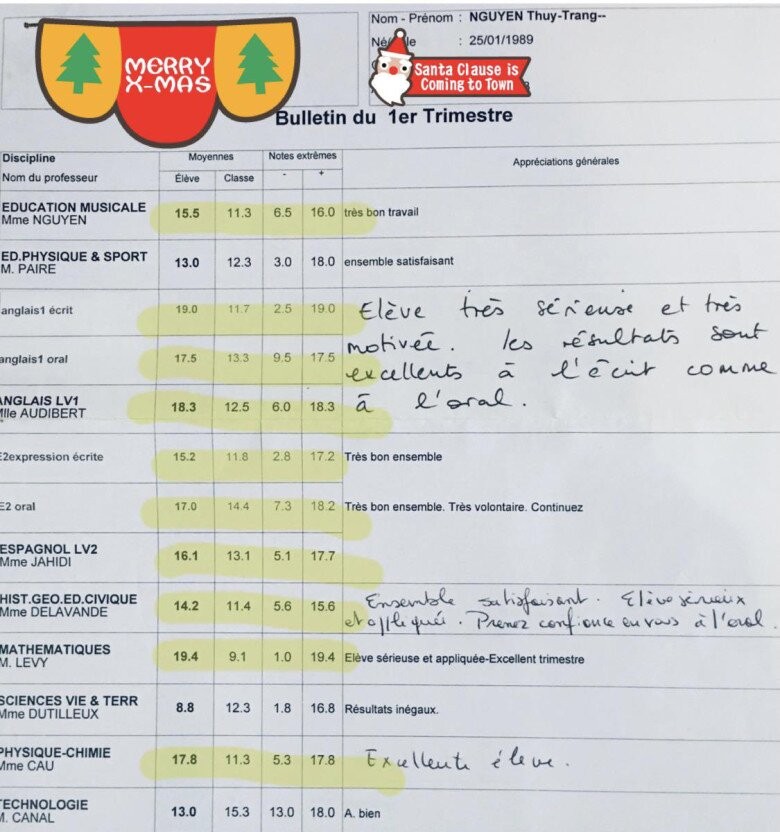 Bảng điểm khi đi học của Trang Pháp khiến nhiều người trầm trồ.