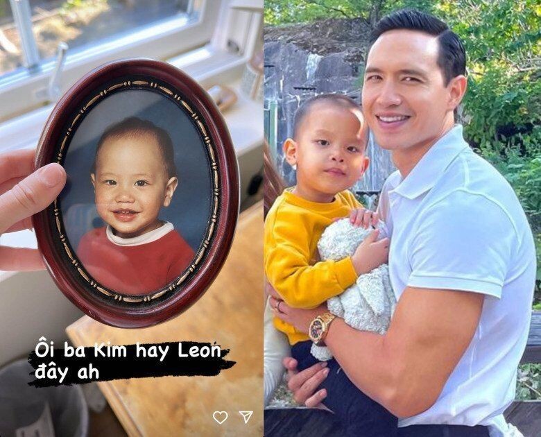 Bé Leon nhà Hồ Ngọc Hà hiện tại giống hệt bố Kim Lý lúc nhỏ (ảnh trái). Hồ Ngọc Hà cũng phải ngạc nhiên vì sự giống nhau này.