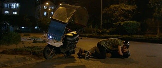 Hào sốc quá, không điều khiển xe được rồi cả hai đều bị ngã. Đúng lúc này, hai ánh mắt chạm nhau. Cảm xúc khác lạ dâng trào và cặp đôi trao nhau nụ hôn đầu tiên, đánh dấu bước chuyển mới trong tình cảm.