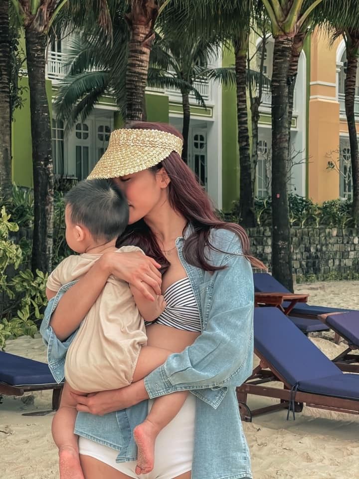 Kể từ khi làm mẹ, Lan Khuê đều tự mình chăm sóc cho con trai, cô tự mình nấu đồ ăn cho con và chơi cùng con. Song, gương mặt của "quý tử" luôn được Lan Khuê giấu kín.
