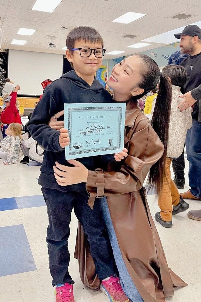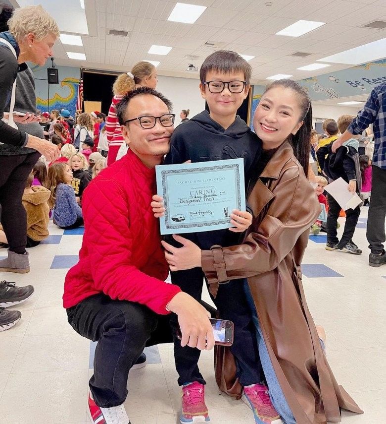 Vợ chồng Diệu Hương rất vui mừng khi con trai nhận được giấy khen.