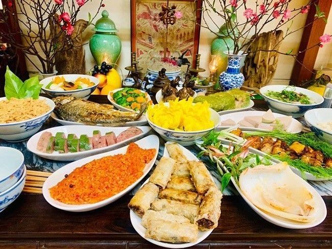 Diệu Hương tự mình chuẩn bị mâm cổ Tết mang đậm hương vị Việt Nam cho cả gia đình cùng thưởng thức.