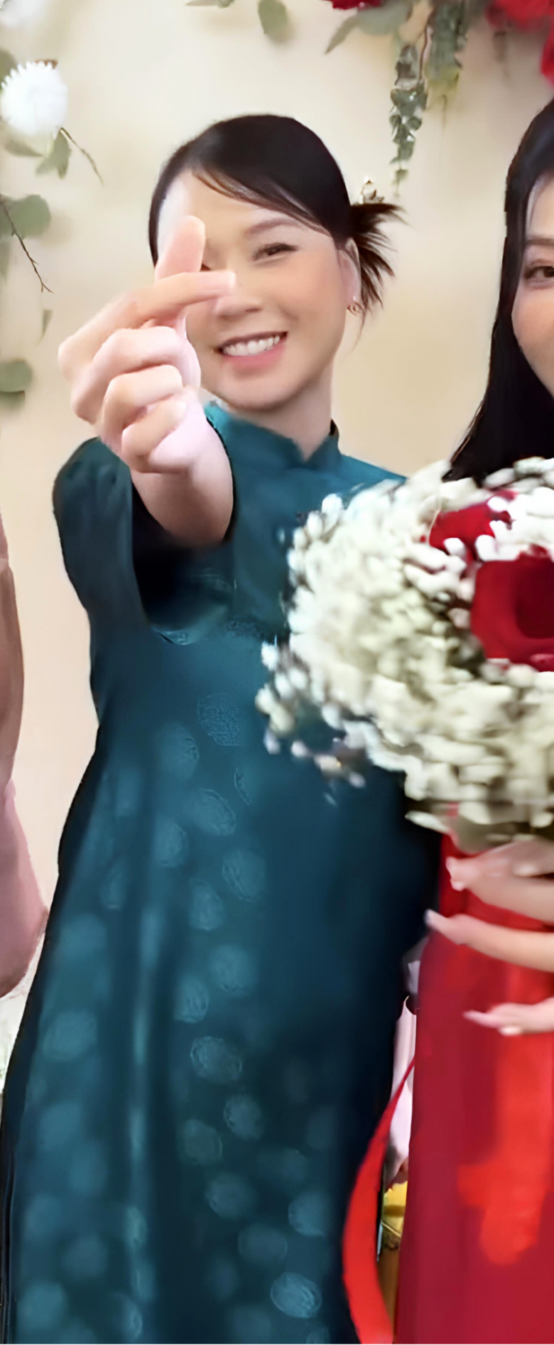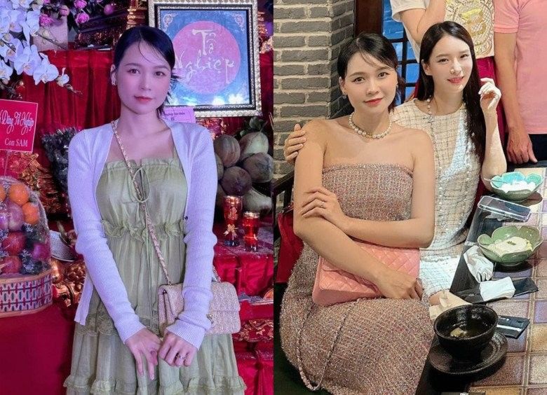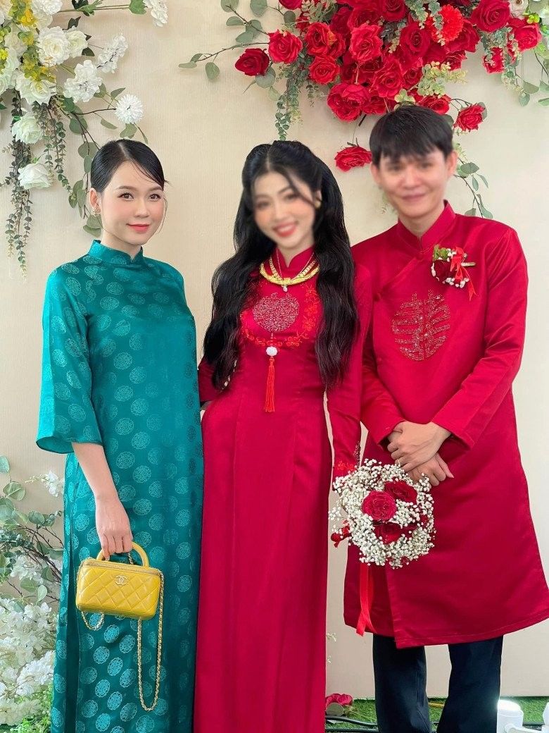 Sam diện áo dài dáng rộng đi dự tiệc cưới của chị em thân thiết.