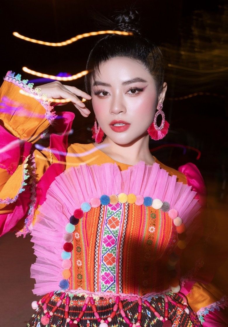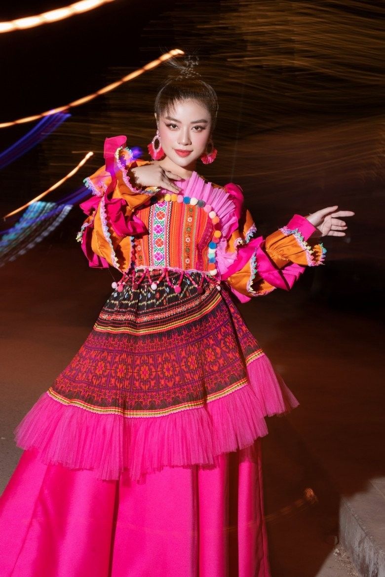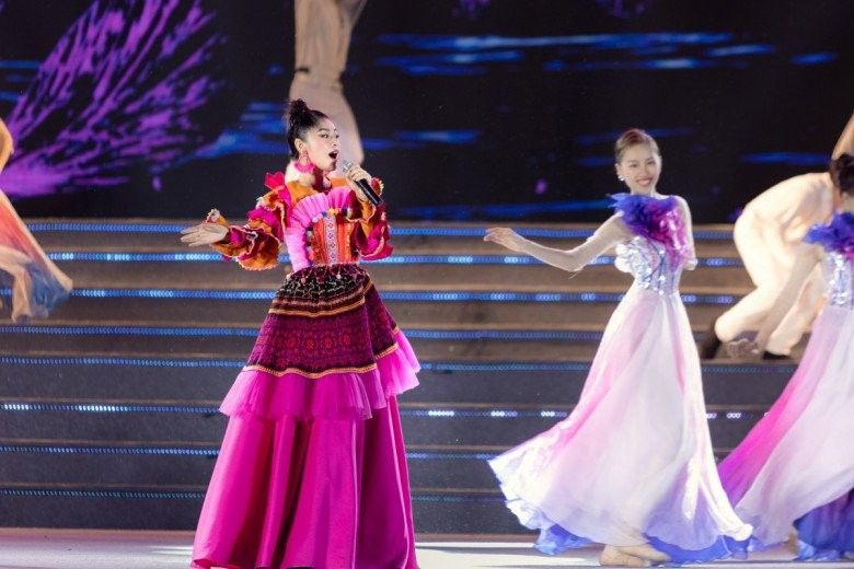 Trong trang phục được thiết kế cầu kỳ và bắt mắt, nữ ca sĩ trông như một bông hoa ban biết đi, duyên dáng và phát ra những thanh âm thu hút lòng người.