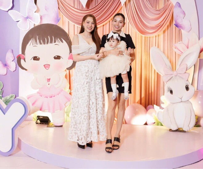 Mới đây, Phương Trinh Jolie đăng tải video chia sẻ về tiệc thôi nôi tròn 1 tuổi của bé Rubby Châu Anh - con gái của vợ chồng diễn viên Hồ Bích Trâm. Cô đi cùng với ông xã - Lý Bình và con trai - bé Tyga (năm nay 2 tuổi).