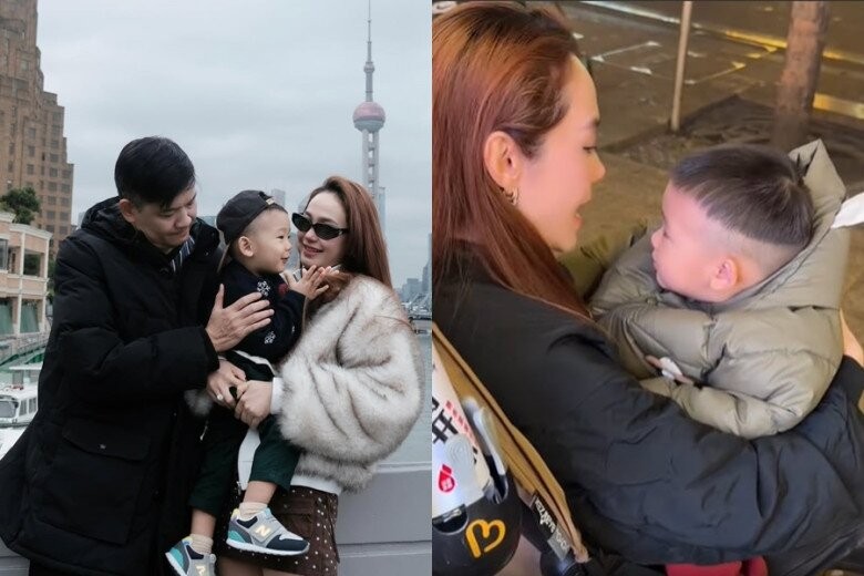 Trên trang cá nhân của con trai, Minh Hằng vừa đăng tải loạt ảnh tại Thượng Hải và nói: “1 ngày dạo quanh Thượng Hải cùng mama và baba”. Trong loạt ảnh, Minh Hằng còn hài hước ngồi trên xe của con trai và bắt chồng đẩy khiến dân tình không nhịn được cười.