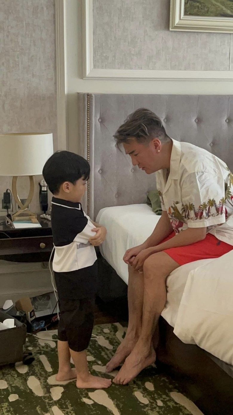 Mới đây, Đàm Vĩnh Hưng đăng tải khoảnh khắc dạy con, lúc này quý tử đang khóc. Trong ảnh, nhóc tỳ Polo ngoan ngoãn, nghe lời khi được ba dạy bảo. Cậu bé rưng rưng nước mắt, lễ phép khoanh tay xin lỗi ba. Nhìn khoảnh khắc trên khiến Đàm Vĩnh Hưng xúc động nhưng vẫn kìm lòng dạy dỗ con.