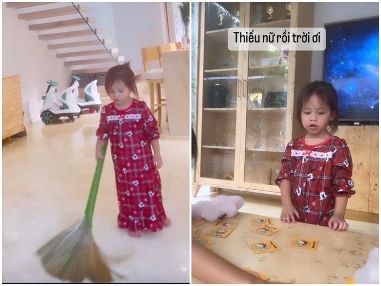 Ngoài ra, trong một video khác, Lisa luôn tay cầm chổi và nhiệt tình quét dọn nhà cửa cho mẹ Hà. Vì yêu thích sự sạch sẽ, gọn gàng trong nhà nên từ bé đã thích lau dọn chỗ ăn, chỗ chơi, biết sắp xếp đồ chơi sau khi đã dùng xong.