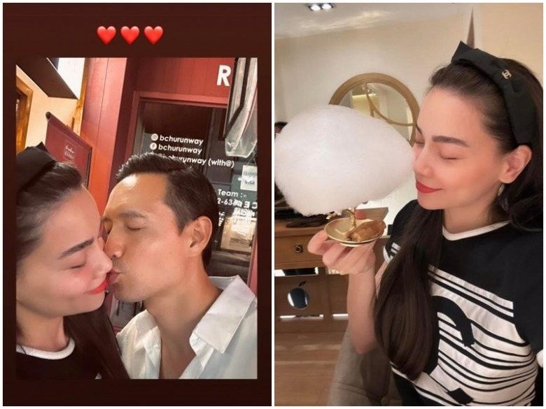 Theo đó trên trang cá nhân, Hồ Ngọc Hà đã đăng tải bức ảnh ghi lại khoảnh khắc nữ ca sĩ và ông xã có màn “khóa môi” cực ngọt tại "xứ sở Chùa vàng" nhanh chóng thu hút sự quan tâm từ cộng đồng mạng. Không có 2 cái đuôi nhỏ, cặp bố mẹ bỉm thoải mái tận hưởng buổi tối ngập tràn hạnh phúc bên nhau.