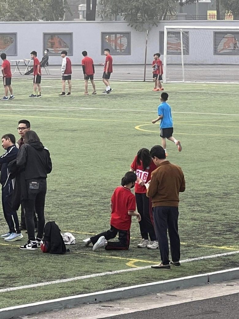 Hồng Đăng còn hài hước chia sẻ: “Nhìn như mõ mương, dặt dà dặt dẹo thế mà đạt huy chương vàng điền kinh 800m và huy chương đồng nhảy xa của quận Tây Hồ mới ghê chứ. Chúc mừng cô gái cả. Ngồi trên mà chỉ lo nó ngất ra đấy thì chết dở”.