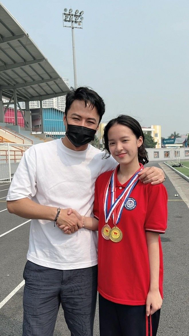 Mới đây trên trang cá nhân, Hồng Đăng vừa đăng tải hình ảnh con gái đạt thành tích huy chương vàng điền kinh 800m và huy chương đồng nhảy xa của quận. Nam diễn viên kinh ngạc khi đứa con gái anh luôn chê như “mõ mương” và “dặt dà dặt dẹo”, trông có vẻ yếu đuối nhưng lại đạt thành tích cao ở cuộc thi thể dục thể thao toàn quận.