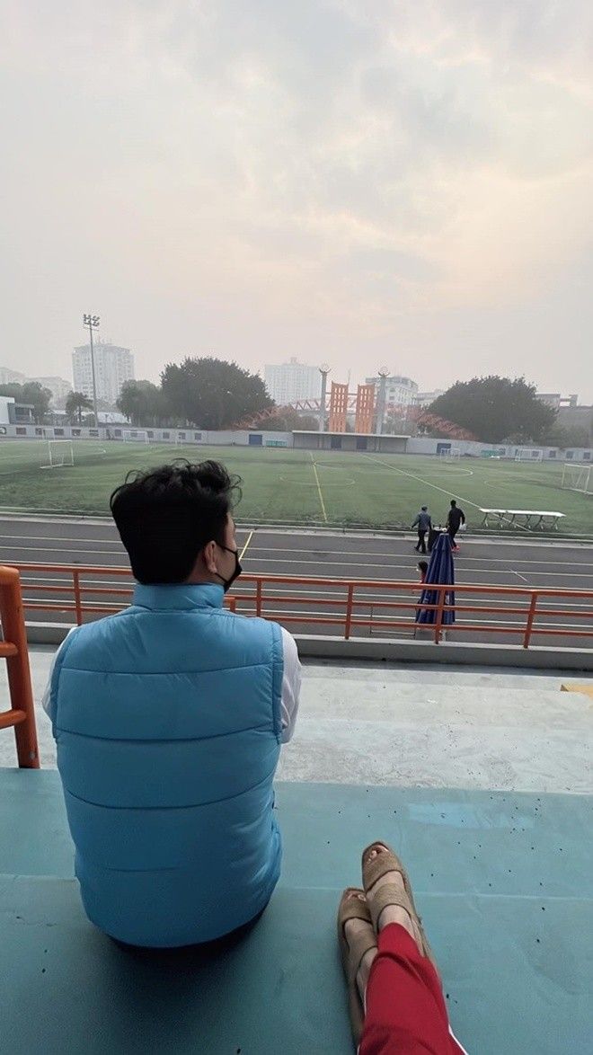 Anh ngồi ở khán đài luôn dõi theo và chờ đợi ái nữ thi xong.