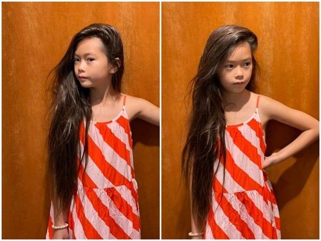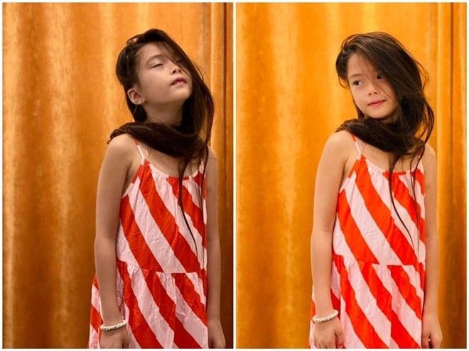 Kèm theo dòng trạng thái là loạt ảnh bé Sol tự tạo dáng cực thần thái cho mẹ chụp ảnh. Cô bé sở hữu mái tóc dày, dài đáng mơ ước màu hạt dẻ, càng làm tôn lên khuôn mặt với những đường nét nhỏ nhắn, thanh tú, đậm chất Á Đông. Trong loạt ảnh, có nhiều khoảnh khắc con gái Đoan Trang tạo dáng "xuất thần", như người mẫu chuyên nghiệp. Nhóc tỳ được khán giả tấm tắc khen trông như "nàng thơ" dù bối cảnh chụp vô cùng đơn giản.